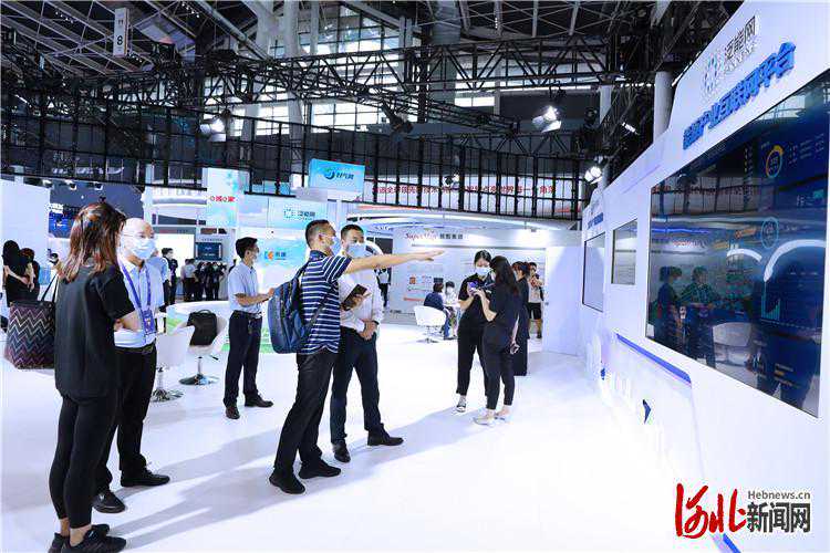 图为2021中国国际数字经济博览会上,新奥集团工作人员为参观者介绍相关成果。