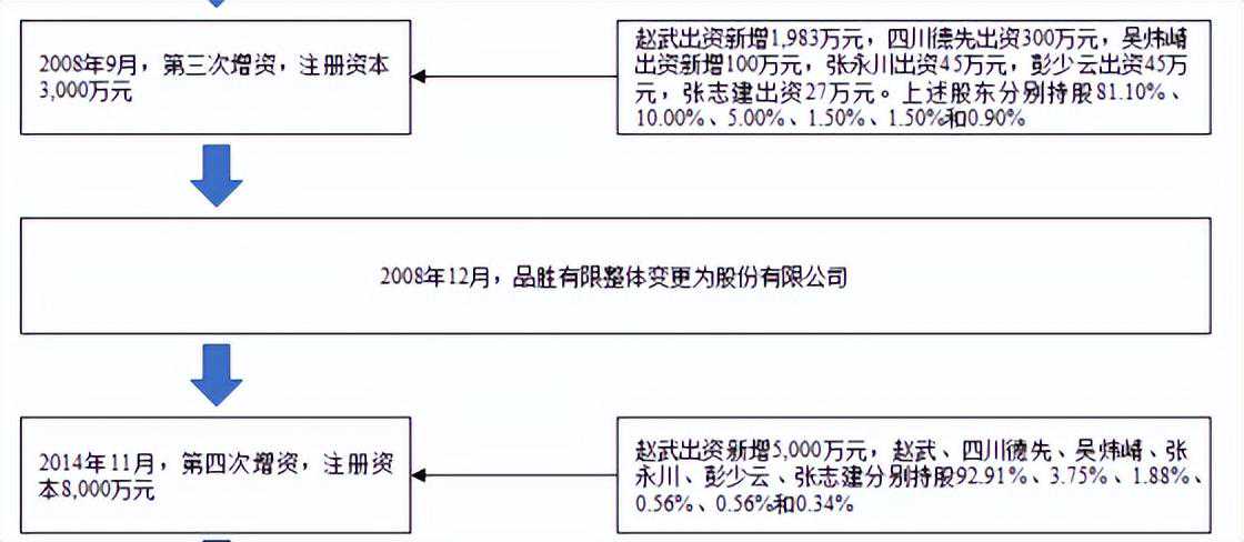 早在2003年10月20日,赵武与任耀东共同出资设立德先电子,设立时的注册资本为50万元。其中赵武认缴出资45万元,任耀东认缴出资5万元,均为货币出资。2008年10月23日,公司名称变更为广东品胜电子有限公司。2008年12月2日,品胜有限整体变更设立为股份有限公司,即广东品胜电子股份有限公司。2015年10月,在全国中小企业股份转让系统挂牌公开转让;2017年10月,终止在全国中小企业股份转让系统挂牌。