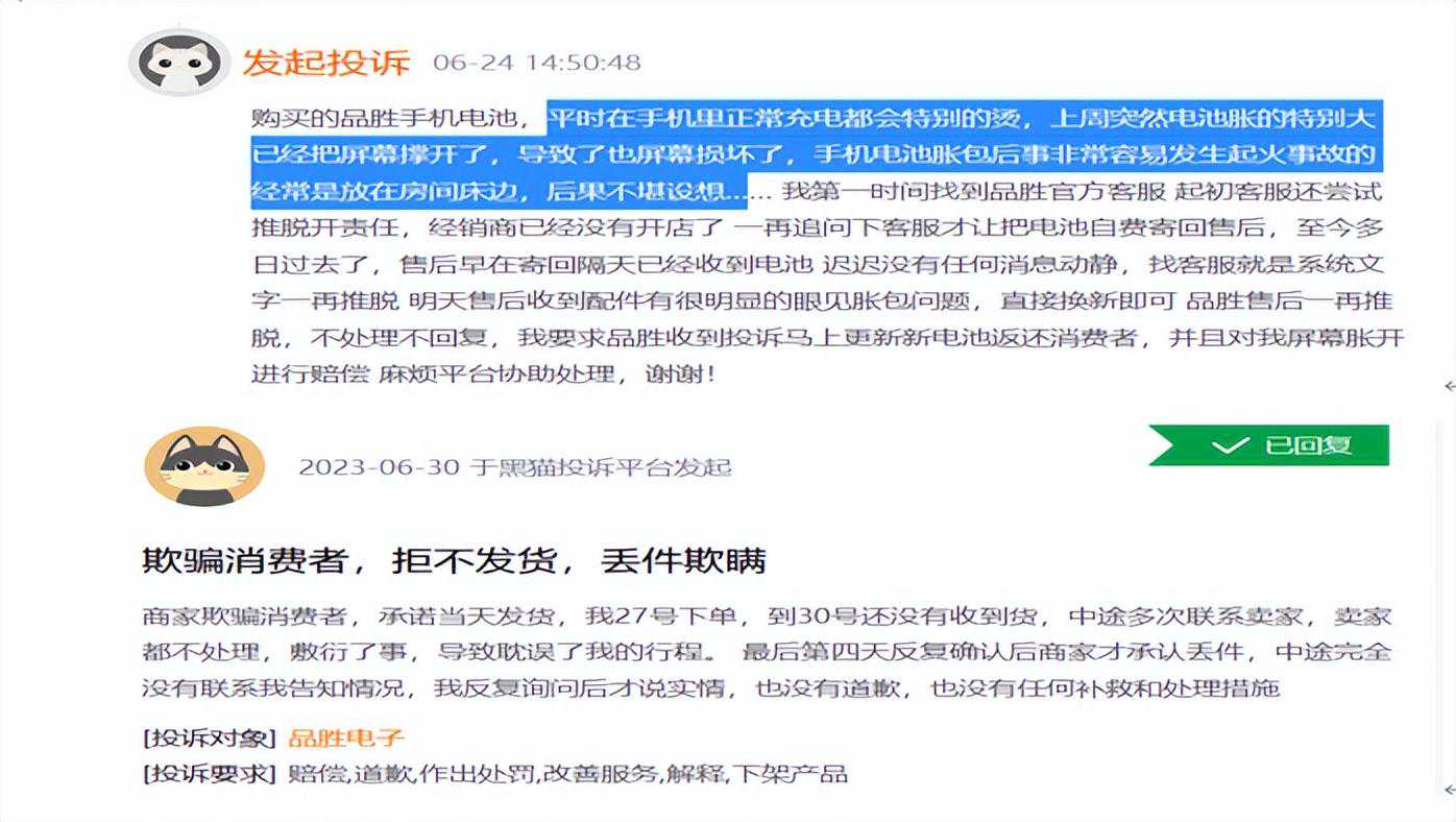 与品胜实业起商标纠纷,内控再三出问题,黑猫投诉近500条