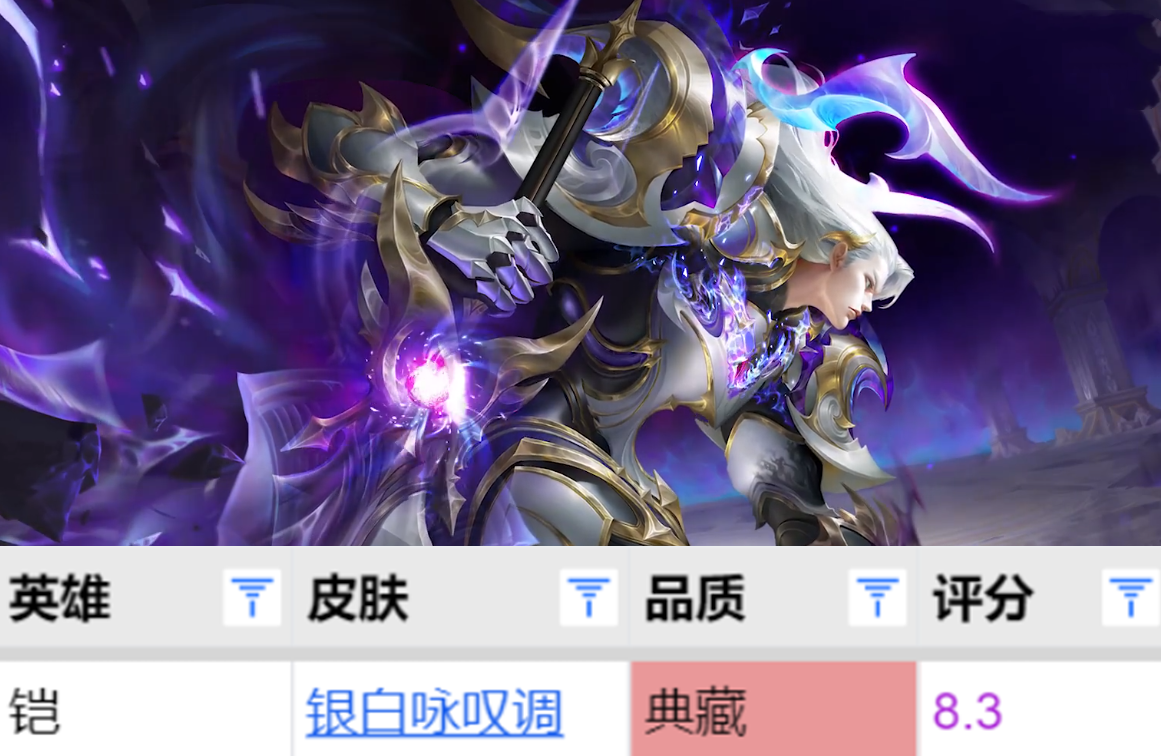 最终银白咏叹调的分数排在了第二名,仅次于曙光守护者,但我想,如果这两个皮肤一同上线,那个分数可就要反转了。