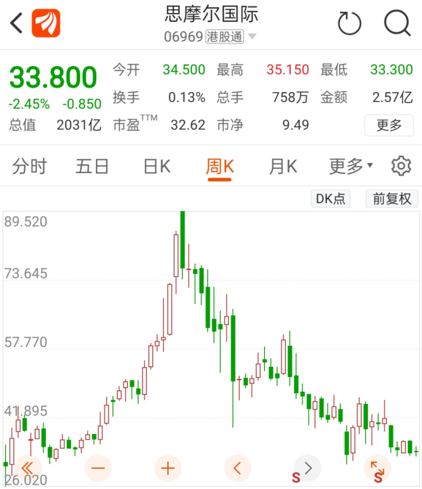 以雾芯科技为例,其上市之初,今年年初的总市值一度高达3500亿人民币,此后连续遭遇监管风暴,股价一落千丈,期间最大跌幅接近90%,最新总市值仅剩62亿美元(约合人民币399亿元);另外,在港股上市的思摩尔国际(06969.HK)也经历了同样的遭遇,今年年初至今,累计跌幅也接近60%,总市值蒸发接近3000亿港元。