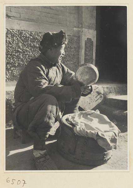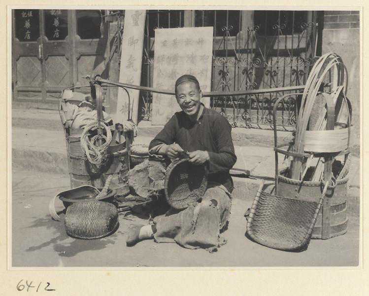 维修竹制品器物的手艺人