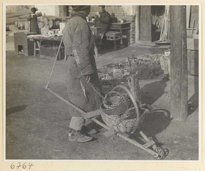 男子在街道上推手推车