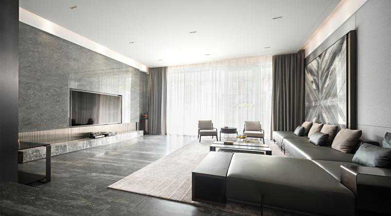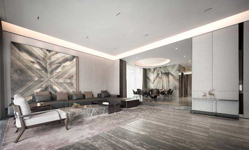 进入客厅,大理石背景为客厅的视觉焦点,木材的应用更是起到了点睛之笔的作用。无论是场景的塑造、陈设的布置,亦或是细节的刻画,都旨在更好地表达高品质生活方式,以及彰显高品质的居家态度。