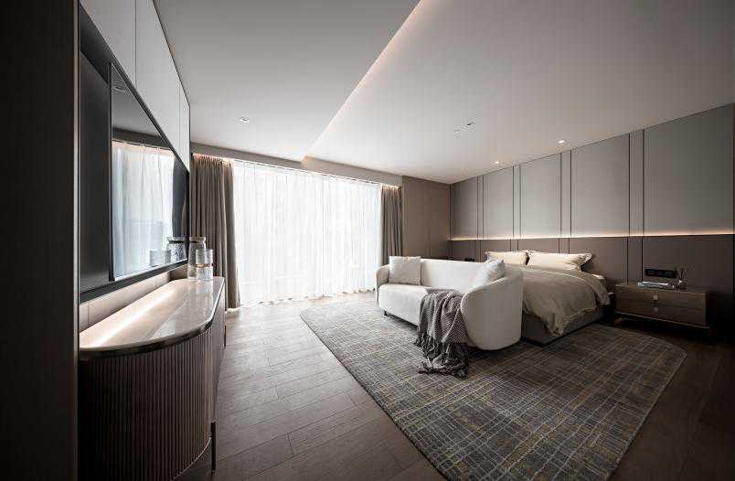 进入女主人房,温婉简约的设计表达,让人享受空间真正所带来的愉悦。随意的一条披毯,不喧哗不造作,一张纯白沙发,则为女主人开辟的一个属于她的世界。
