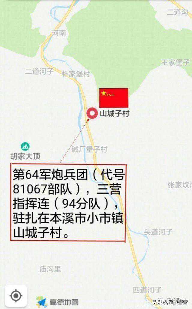 连队驻地地图,军炮团三营指挥连,驻扎在辽宁省本溪市小市镇山城子村。