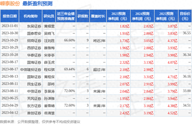 证券之星数据中心根据近三年发布的研报数据计算,东方证券姜雪晴研究员团队对该股研究较为深入,近三年预测准确度均值为72.6%,其预测2023年度归属净利润为盈利2.17亿,根据现价换算的预测PE为28.07。