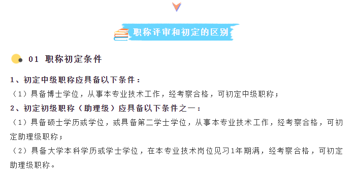 职称评审每年只有一次还需要准备很多材料职称初定需要满足年限职称评审和初定有什么区别?接下来,大家和小编一起看看吧~3、初定中级职称应具备以下条件:(1)具备博士学位,取得工程师资格后,从事本专业技术工......