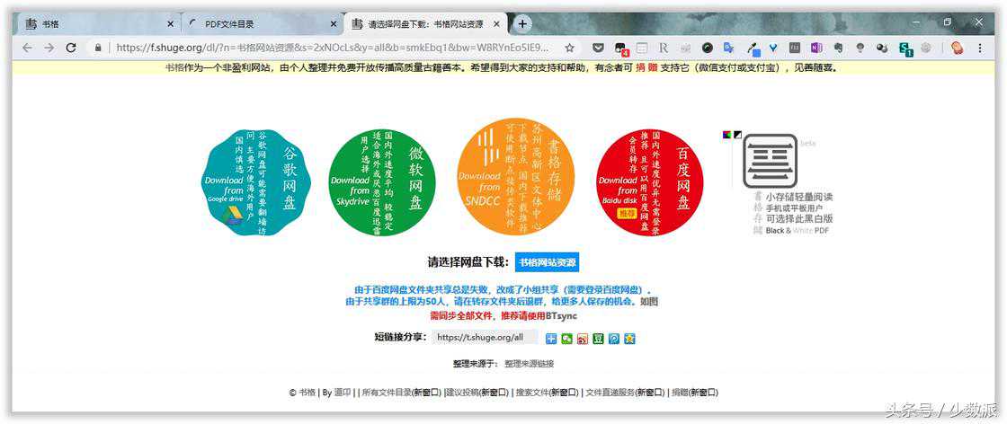 书格提倡开放式共享资源,无须用户注册即可浏览下载网站的任何资源,用户可以在站内搜索查看已发布资源列表,或者直接进入书格的网盘目录浏览下载。根据书格公布的数据显示,截止今年3月底,网站已经发布超过1600套书籍资源,所有资源大小约616GB。在书格的资源分类中,我们可以按照学术分类(史地、社会科学、艺术等)和兴趣分类(永乐大典系列、练字参考、要看图多的等)找到不同类型的书籍。