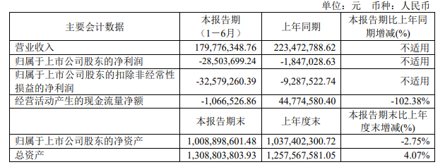 金鸿顺2023年半年报显示,公司实现营业收入1.8亿元,同比下降19.55%,归母净利润亏损2850.37万元,同比下降1443.22%。经营活动产生的现金流净额为-106.65万元,同比下滑102.38%。