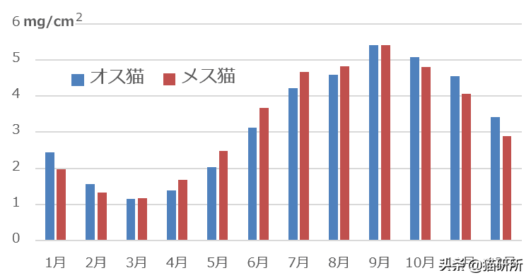这几千万根毛的生长速度会随着光照时长的不同而改变。下表是生活在北半球猫咪的猫毛生长情况变化: