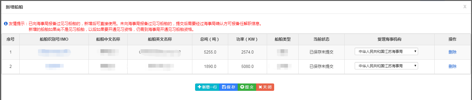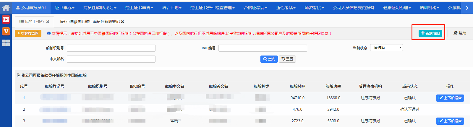 1)船舶必须是办理过船舶登记且为本公司拥有或者管理的中国籍船舶。新增的船舶需要经过海事管理机构确认后方可开始报备船员任解职。