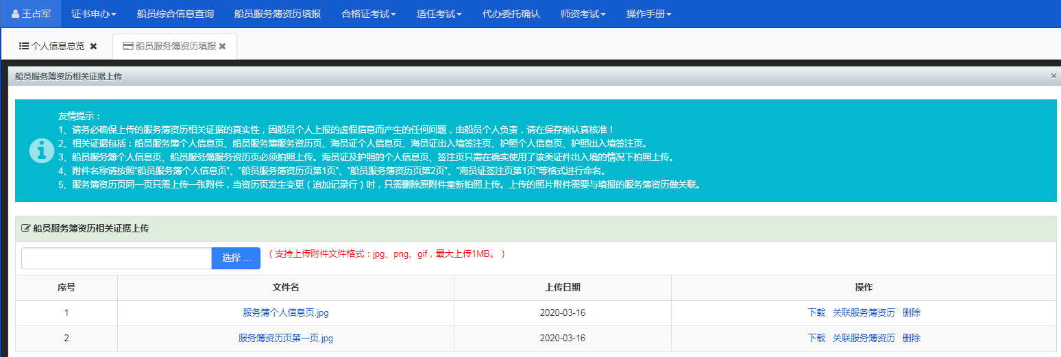 6.2.2上传船员服务簿资历记载记录