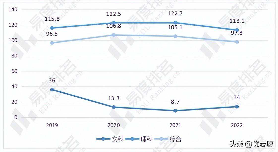 下图为测绘类专业2019-2022年各省本科平均线上分差。文科生的招生数据很少,有时候波动较大或趋势反常实属正常。理科生和综合类考生2022年报考测绘类专业的线上分差较去年都有一定程度的降低,测绘类专业2022年报考难度下降。