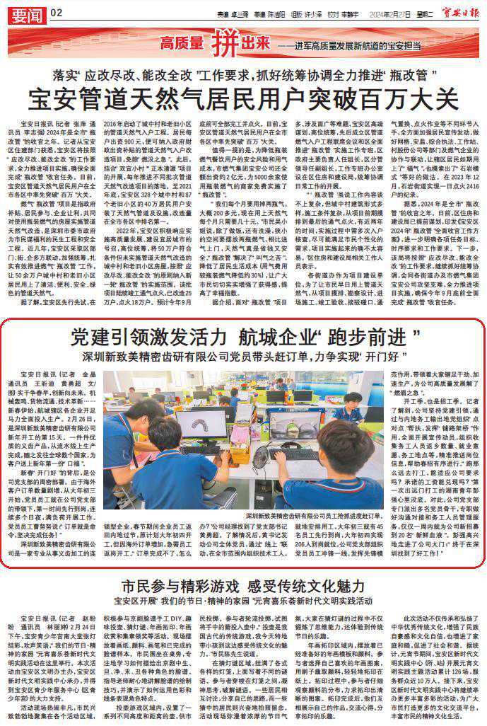 实干争春早,创新向未来。机械轰鸣、货物流通、技术革新……新春伊始,航城辖区各企业开足马力全面投入生产。2月26日,是深圳新致美精密齿研有限公司新年开工的第15天。一件件优质的义齿产品,从流水线上生产完......