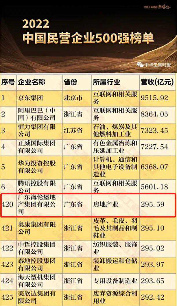 凭借领先的市场竞争力和发展稳健性,海伦堡持续受到行业广泛认可,在“2022中国民营企业500强”中位列第420位、“2022广东省房地产企业综合竞争力前100名”中位居第12名,同时连续多年跻身“中国房地产公司品牌价值TOP20”“中国房地产开发企业50强”“商业地产综合实力50强”等,打造了优质企业高质量发展样本。