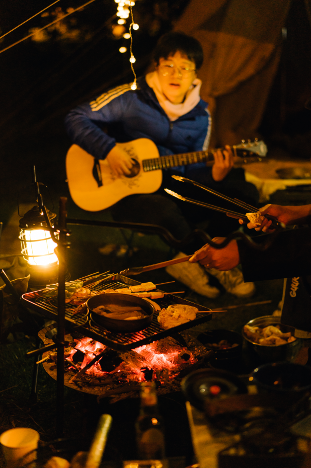 帐篷环绕出的中部空间则划分出亲子趣野乐园与热情篝火草坪,社交、娱乐、餐饮等多种需求都可得到满足。