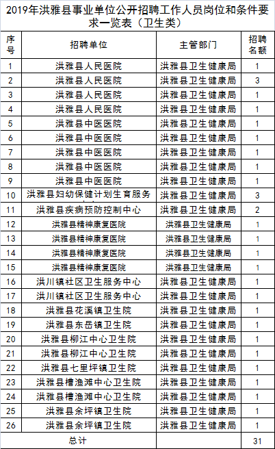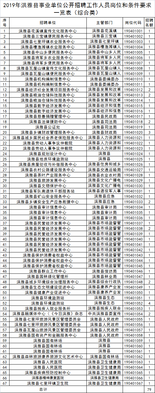 2019年洪雅县事业单位公开招聘工作人员岗位(综合类)