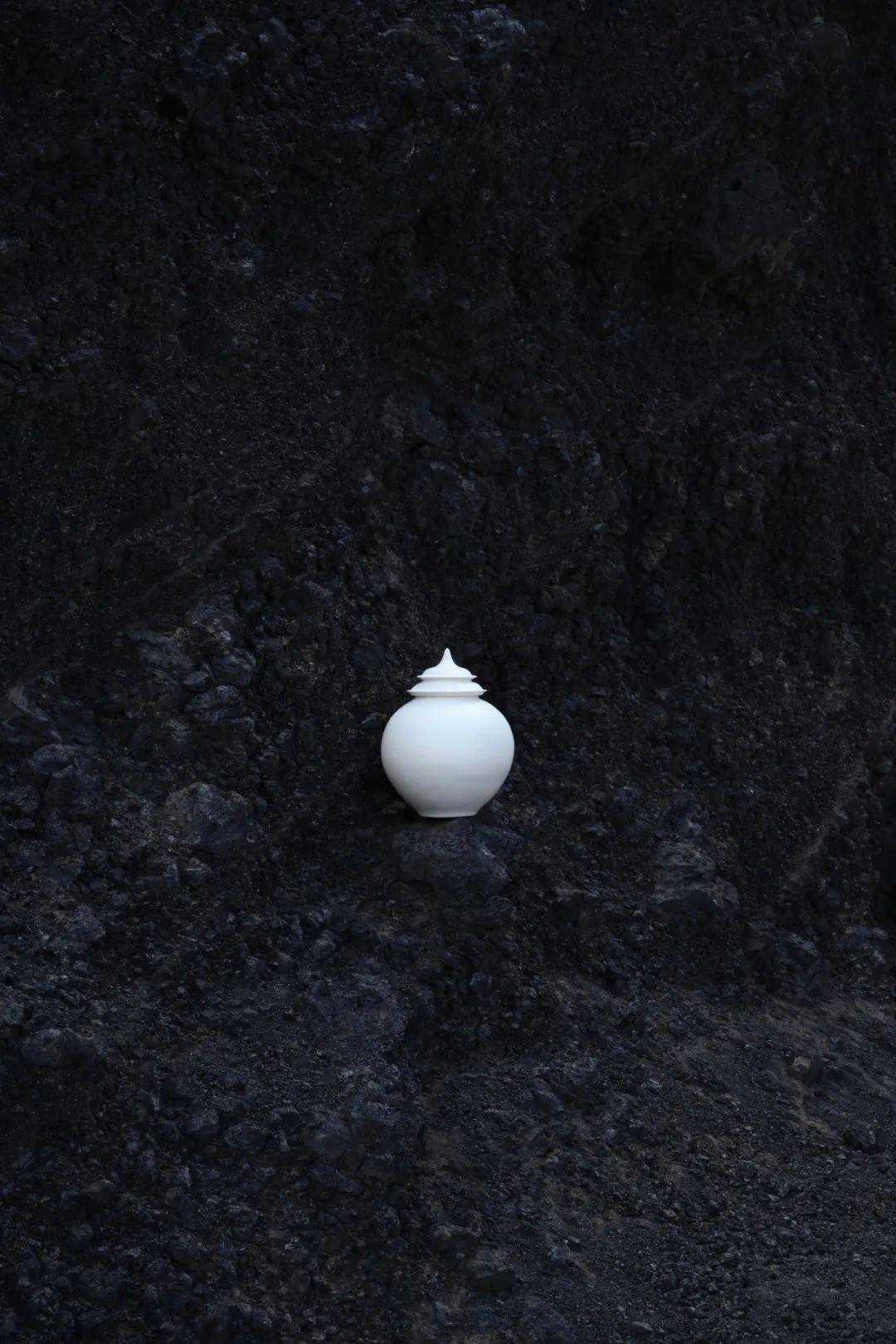 ●“归丛”众生系列灵罐“挽月”,陶瓷材质,形似古代月亮罐。