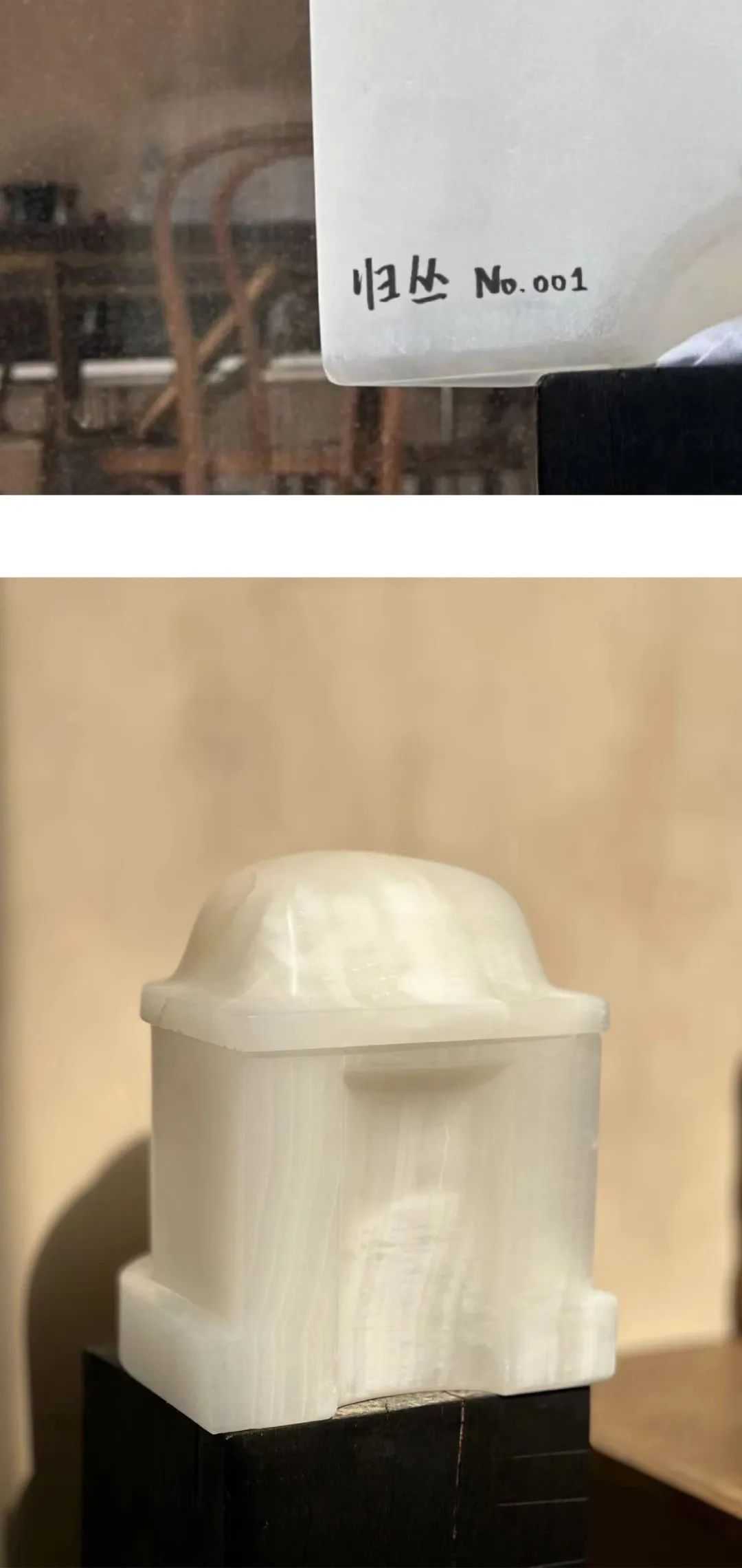 几乎在时间节点的最后一天,产品出炉。白玉做的骨灰盒漂洋过海,来到了陈可辛位于泰国的家中,被放置在一墙老照片中最中间的位置。