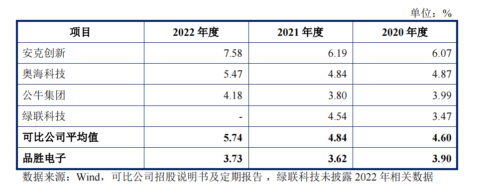 除了几乎已经停滞的营收,另一个让品胜饱受诟病的点便则是低于同行平均水平的研发费率。
