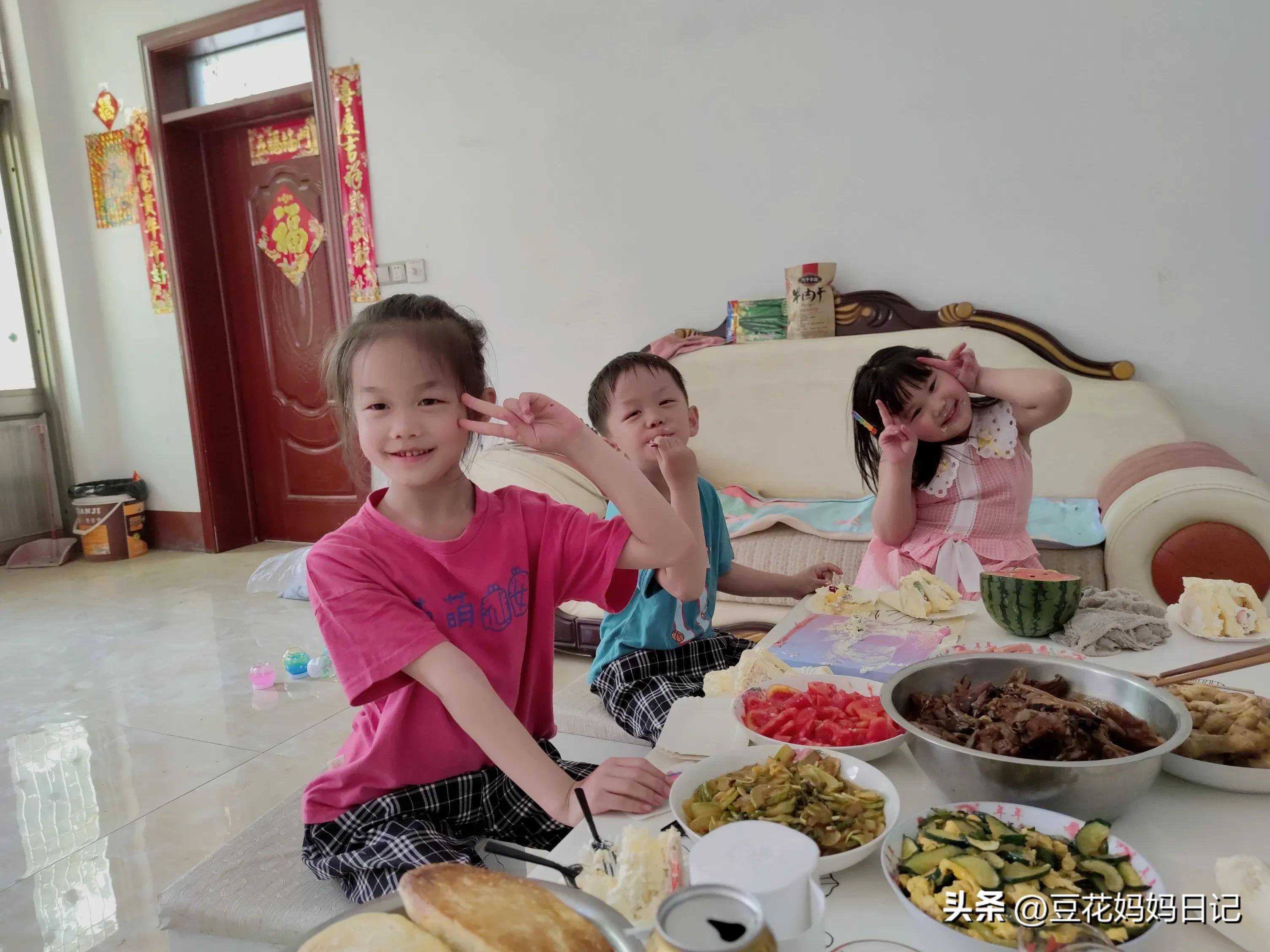 中间是豆花,两边是我妹妹家的孩子,可能是血缘的关系吧,豆花特别喜欢和他们俩一起玩,自从上次回家以后,就经常提起要去姥姥家,要和姐姐弟弟玩,小孩一起能玩什么呢?无非就是过家家,你追我赶的那种,有姐姐弟弟也就不看平板,不看手机了,一起疯撒。这才是童年呀!