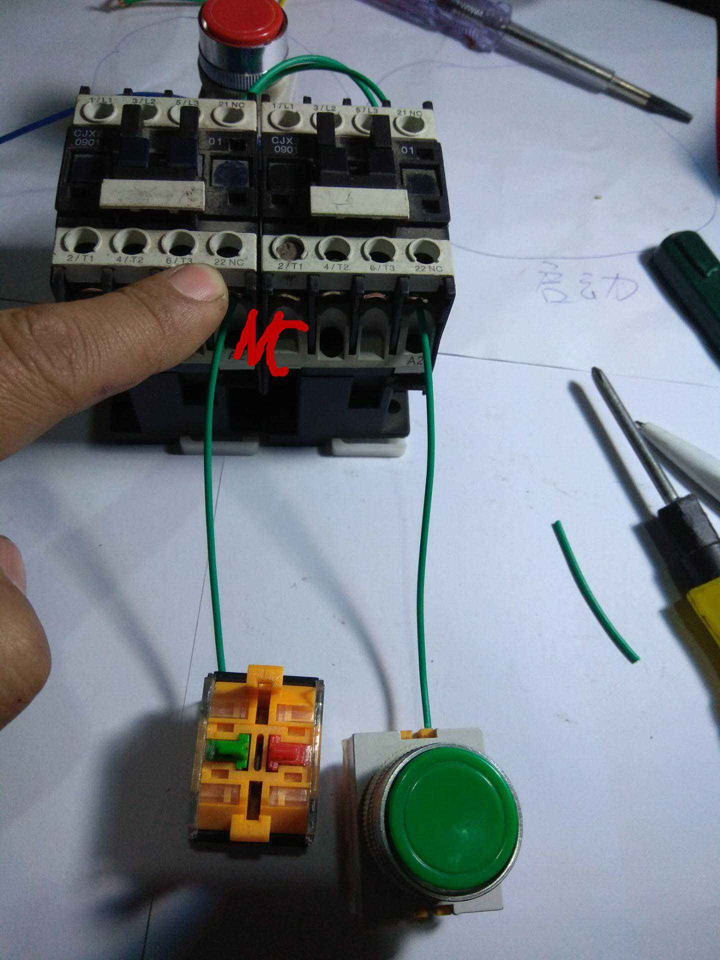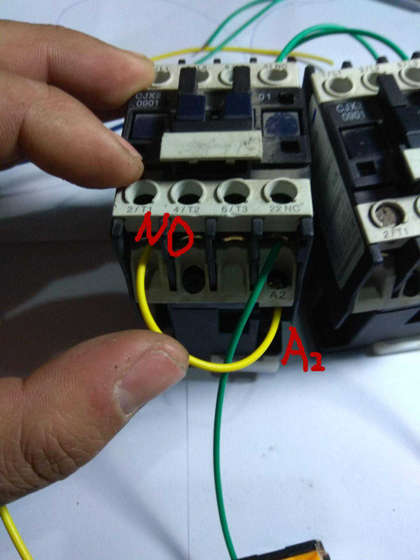 最好辅助触点有一组常开NO,我这个没有,所以我借助的主触点,三组主触点都是常开触点。