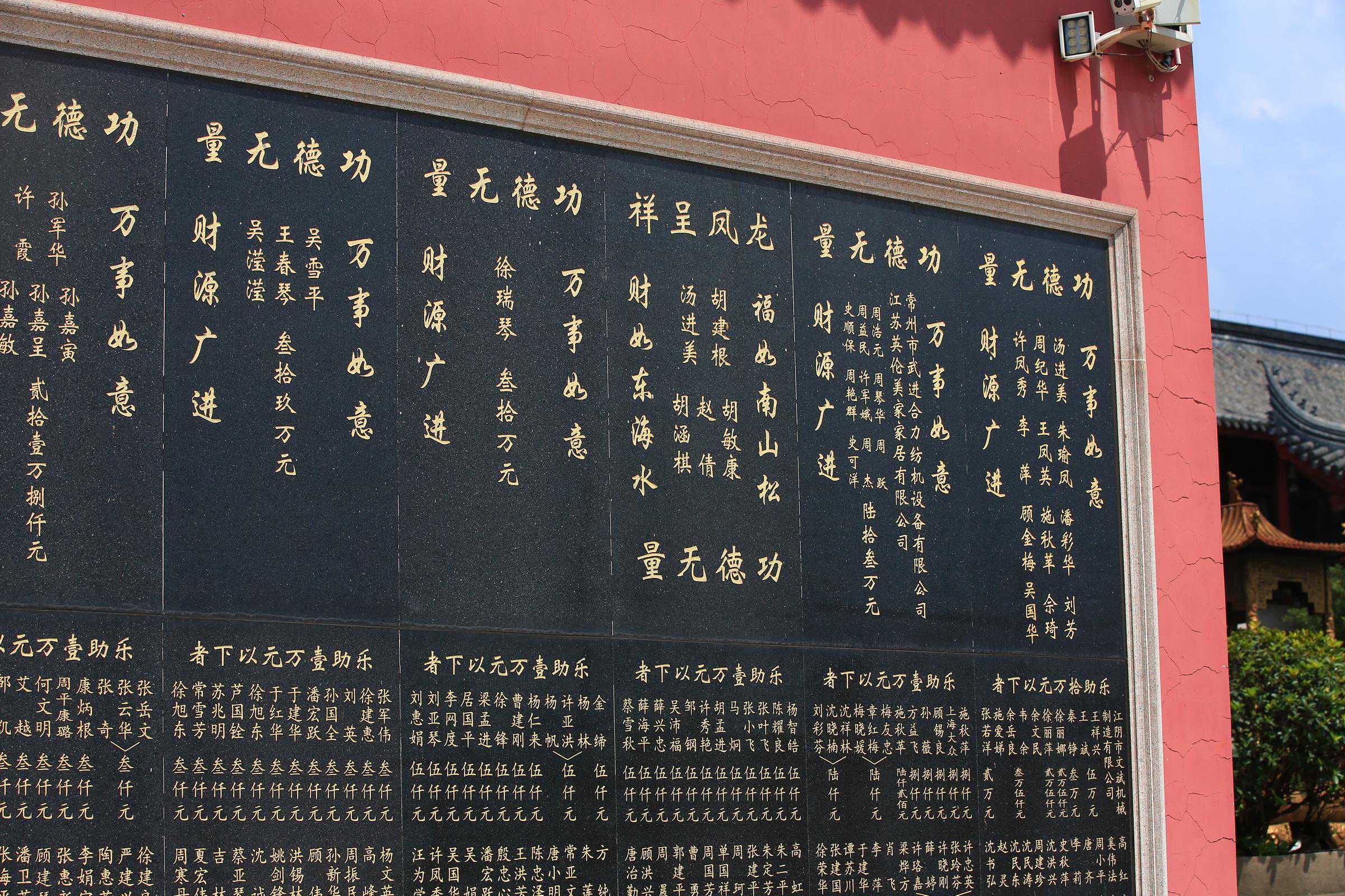 三茅殿南侧山墙,镌刻着捐赠功德人员名单。