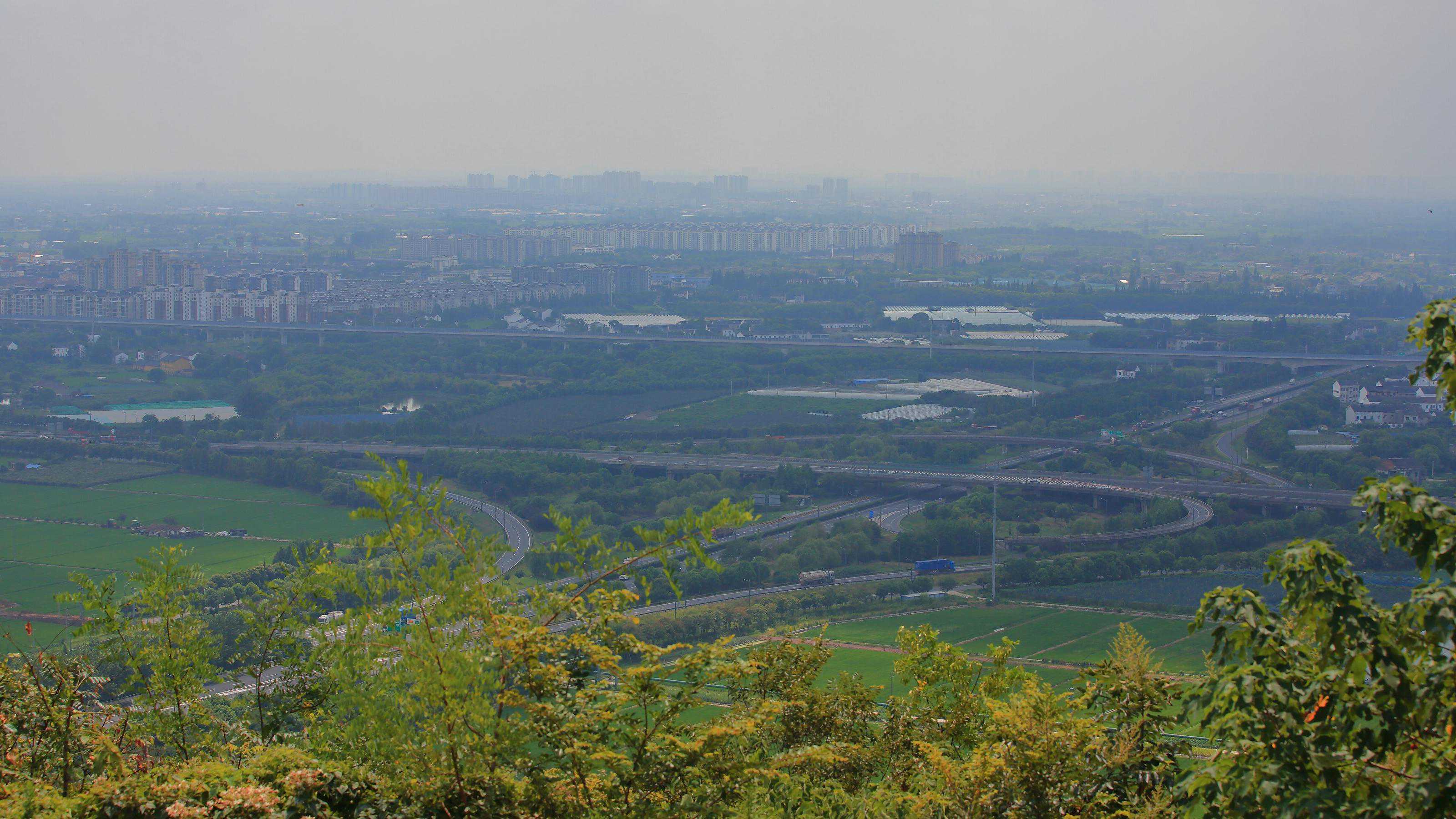 本以为山顶会有不错的视野,没想到全被浓密的灌丛遮挡住了,根本没有往江阴主城方向眺望的角度。这边还有一条从山脚直接爬上来的山路,秦望山隧道正好从山脚穿过。