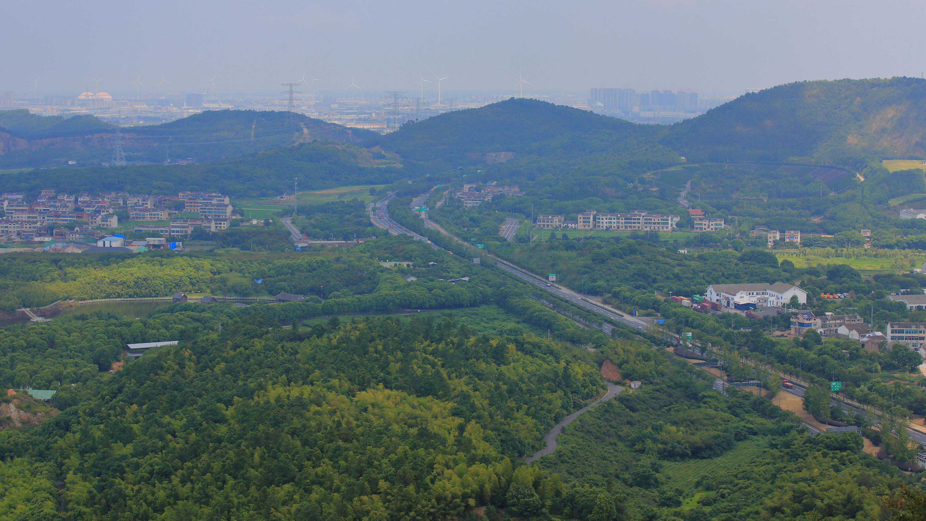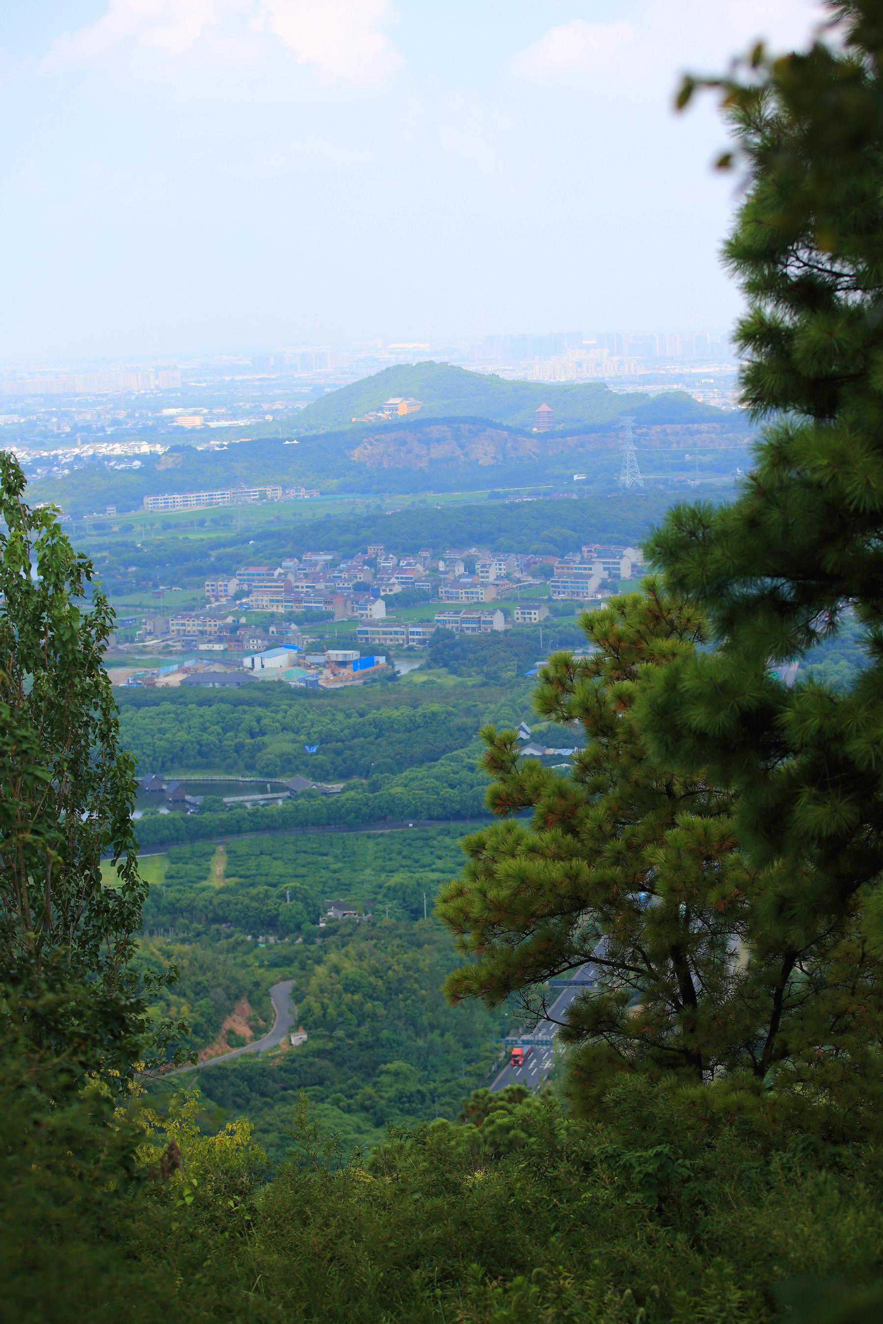 沿着三茅道院三清殿脚下的机耕路,徒步向秦望山主峰三茅峰进发。首先来到殿后的一处瞭望台,视野非常开阔,开启俯瞰系列。