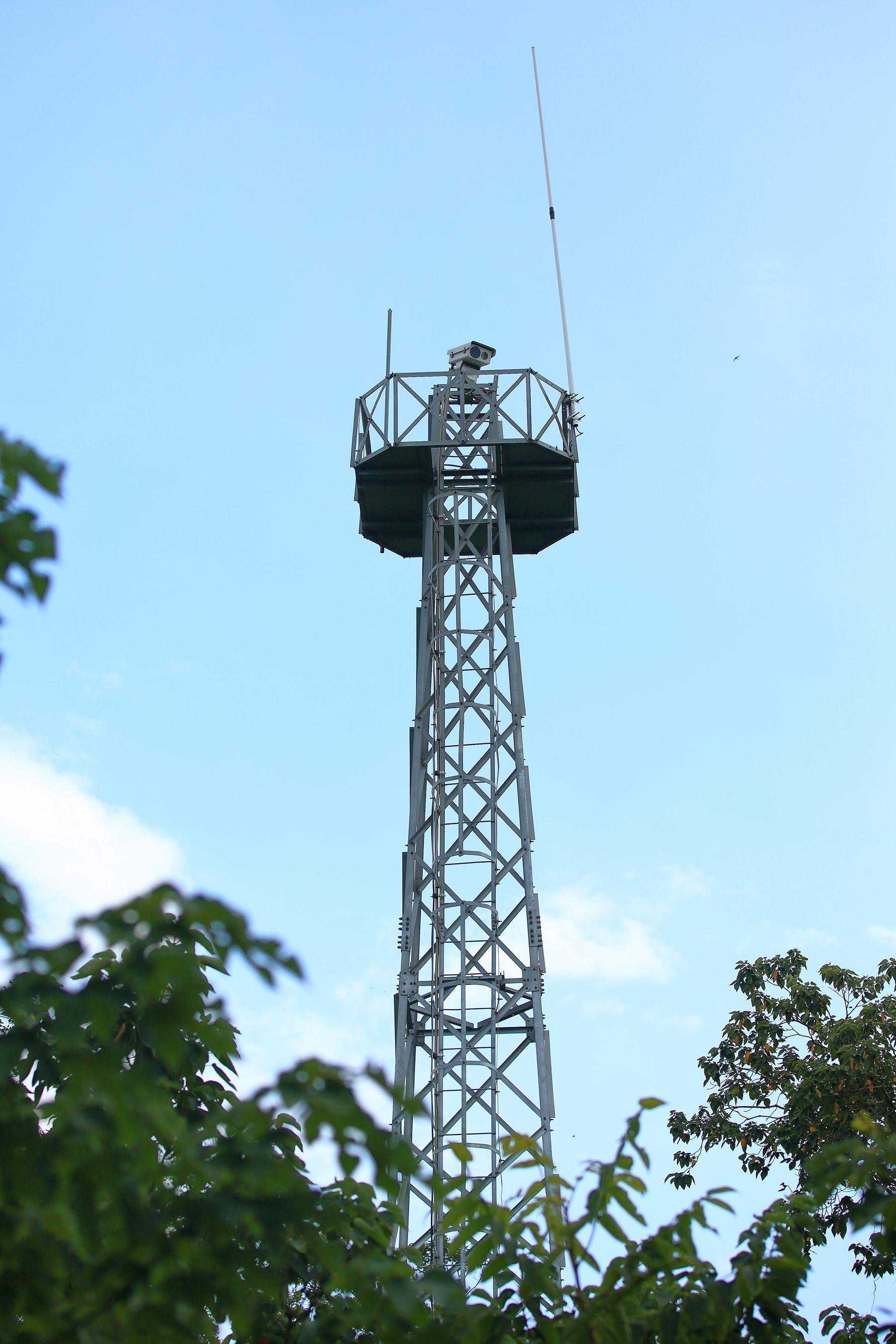 正值正午时分,热得人透不过气来,好不容易抵达三茅峰顶,这里有个铁塔,似乎安装了监控设备。