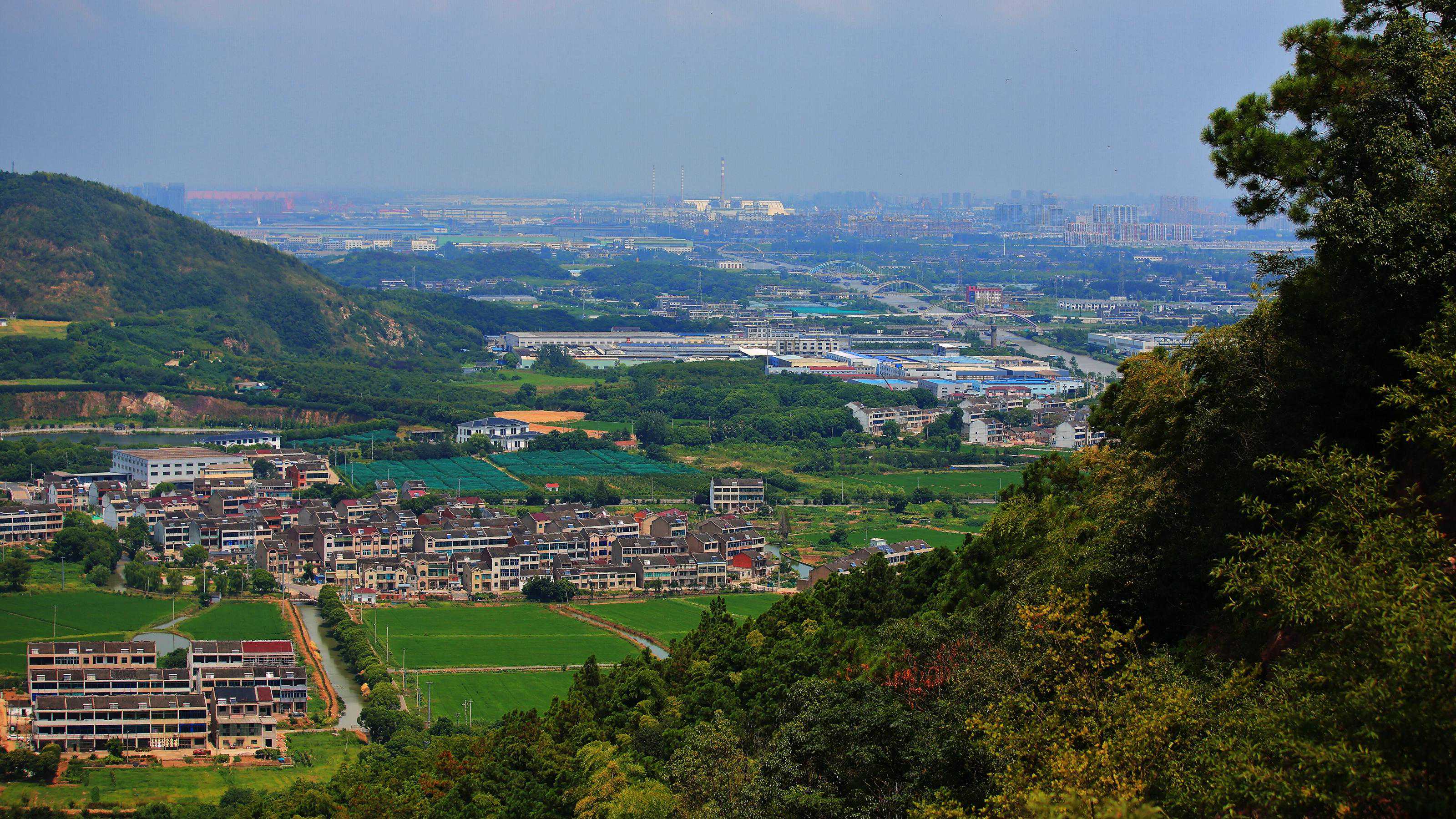 ↓远方的郑陆镇焦溪。