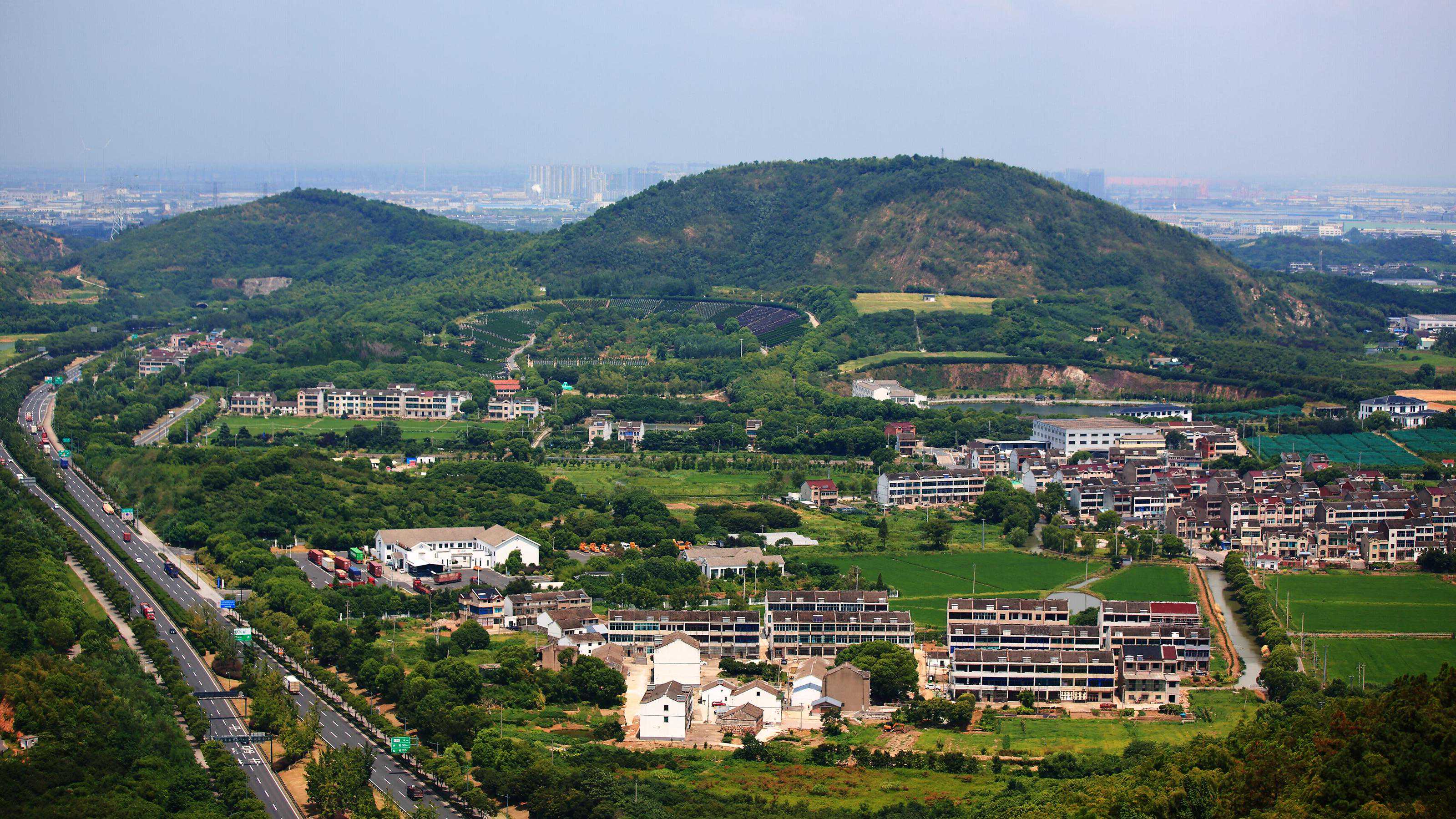 ↓凤凰山西面的舜过山特写,山上有舜山北禅寺和舜山南禅寺。