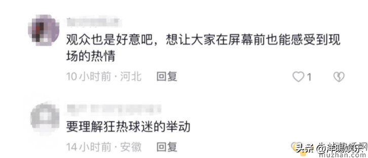 面对突如其来的一切,主持人明显表现出一丝惊慌,但作为主持人的她,用职业操守的理性还是强行让自己保持镇定,冲着对方微微笑了一下,而后提高说话的音量,试图盖过球迷的歌声,并赶忙救场,称“现场的气氛非常热烈”。