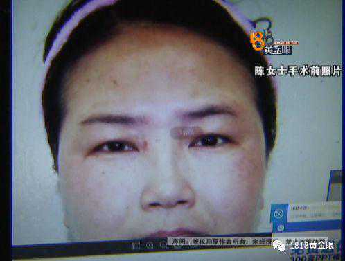 陈女士:“有问题的,就是痛,洗一下搓一下就痛,(外形有什么问题吗?)外形就是眼皮肿,很不自然一看就做过,眼镜从来不敢摘掉,现在还好看,去年是最肿的,做了以后麻药打的有点过了。(这是麻药打肿的?)是麻药打的,我估计就是做了手术脸浮肿的,是真实的,我以前身上胖脸小,体重没什么变化130多斤。”