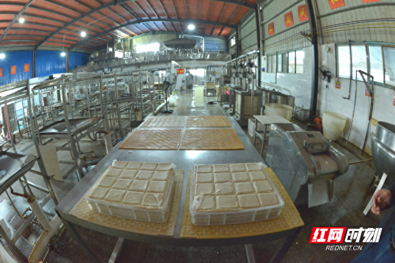 红网时刻新闻11月30(通讯员何炳文)“依托一口清泉水,磨出一块好豆腐,做成一个大产业”。这是安仁县安平镇上街村在实施把“传统优势”变为“经济优势”战略中结出的新硕果。初冬时节,慕名走进新建面积8000余平方米的湖南省龙潭泉豆制品加工厂内,映入眼前的是两条生产线上20多名农民,运用赵氏千年制作豆腐技艺和独特的龙潭泉水、优质黄豆加工生产的“安平司”牌水豆腐、油豆腐、香干豆腐等种类10余个,因味道鲜美、口感极佳、营养丰富而畅销省内外。