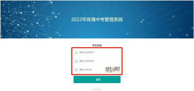 进入电脑端后,考生输入登记账号、密码后即可查询考试成绩(以中考查询为例)。