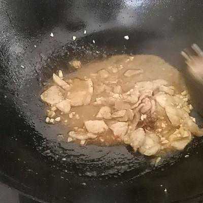 3、倒入腌制好的五花肉、盐、生抽和蒜蓉辣酱