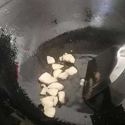 2、热锅倒油,将肥肉炼油