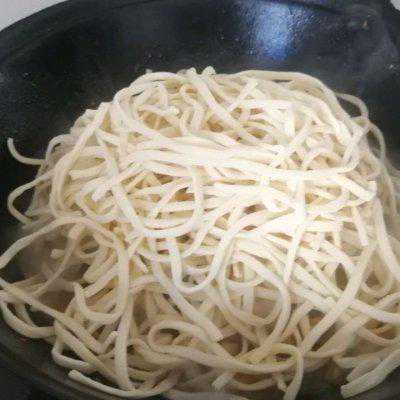 8、放切面,盖锅盖焖10分钟