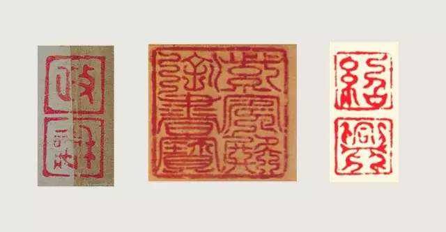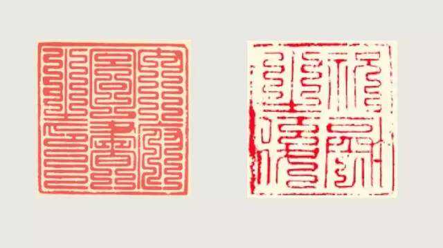 叠篆形式:据《宋史•舆服志》,“太祖诏重铸中书门下、枢密院、三司使印。先是,旧印五代所铸,篆刻非工。及得蜀中铸印官祝温柔,自言其祖思言,唐礼部铸印官,世习缪篆……悉令温柔重改铸焉。”宋初官印沿袭了唐代印章风格又稍作改观,这种格式其实是“缪篆”的“屈曲缠绕”形式。后来,情况发生了一些变化。徽宗“大观元年,又得玉工,用元丰年中玉琢天子、皇帝六玺,叠篆”。
