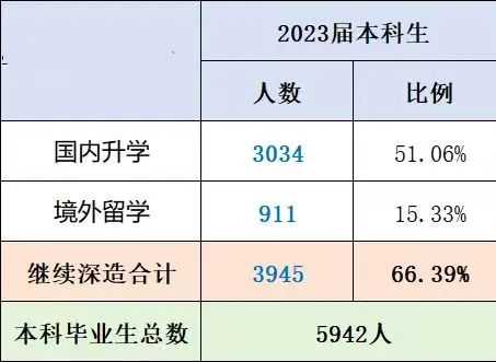 第二,浙江大学2023年进修的学生比例是66%左右,出国比例高达15%