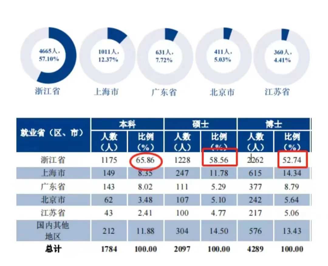 综上,不得不感慨浙江大学的本科生,蛮热衷于提升学历的,然后无论是本科,硕士,还是博士,都比较偏向稳定的工作呢。