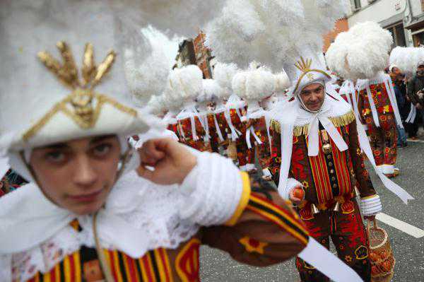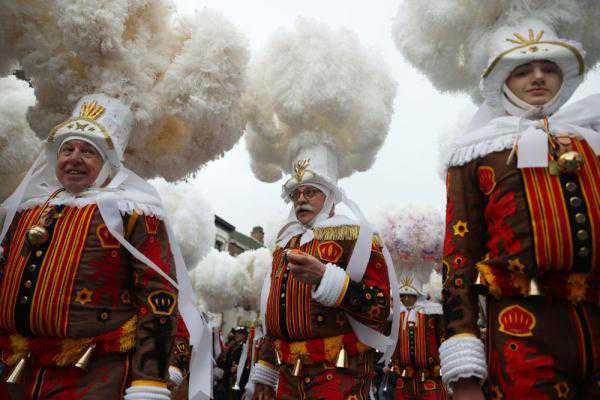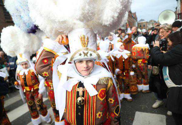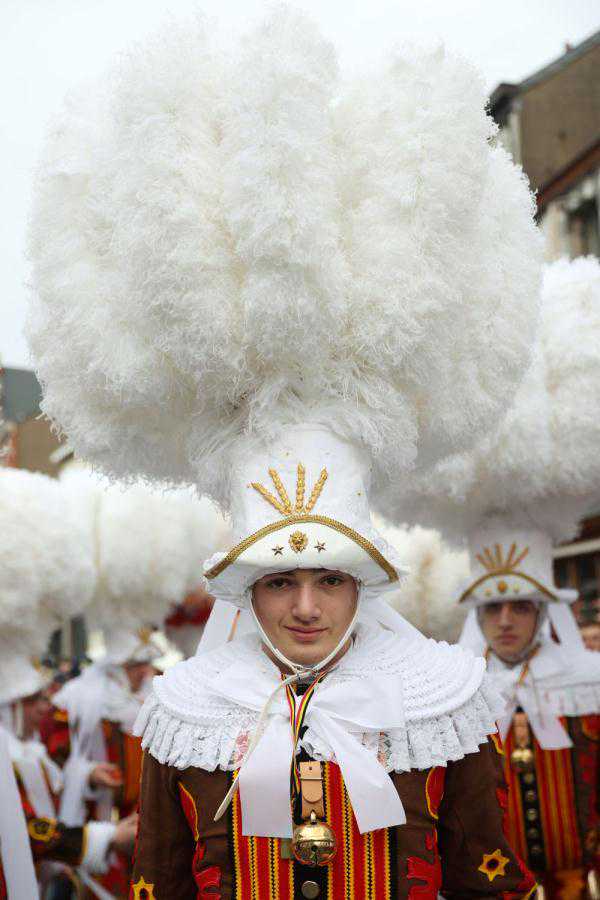 2月13日是2024年比利时班什狂欢节的最后一天,也是活动最高潮的部分。班什当地居民打扮成“憨人”“水手”“农夫”“小丑”等形象,和游客一起参与狂欢。“憨人”是吉祥与快乐的代言人,也是班什狂欢节最具标志性的形象。