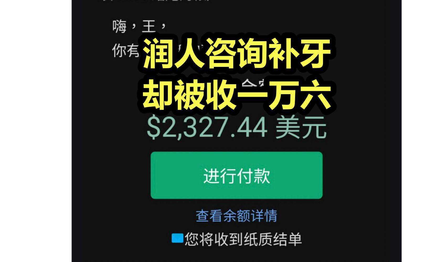 这是医院给润人寄来的一份收费账单:上面显示这次咨询看牙将收取2300美元(约合1.6万元人民币)的费用。