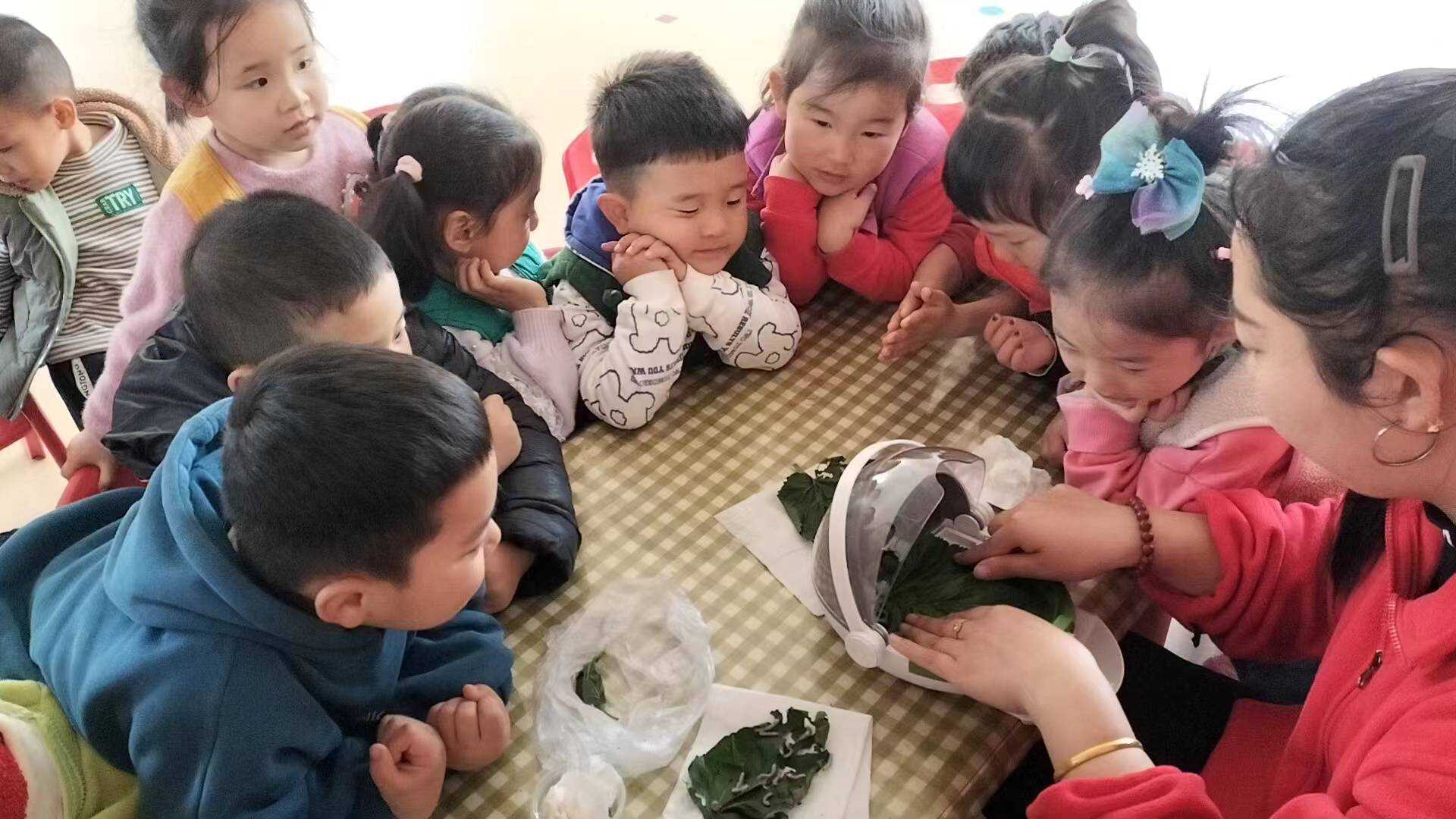 活动中老师们向社区工作人员和孩子们介绍了谷雨节气的由来、特点和习俗,并通过画画的形式,激发小朋友们探究节气的学习兴趣。社区工作人员和孩子们在老师的引导下,感受种植花草、贴染鸡蛋、制作水果茶、蚕食喂蚕等活动,不仅让孩子们了解了谷雨节气的丰富知识,体验到节气的乐趣,同时也使社区的工作人员们品味到谷雨文化习俗,感受中国节气文化的内涵。