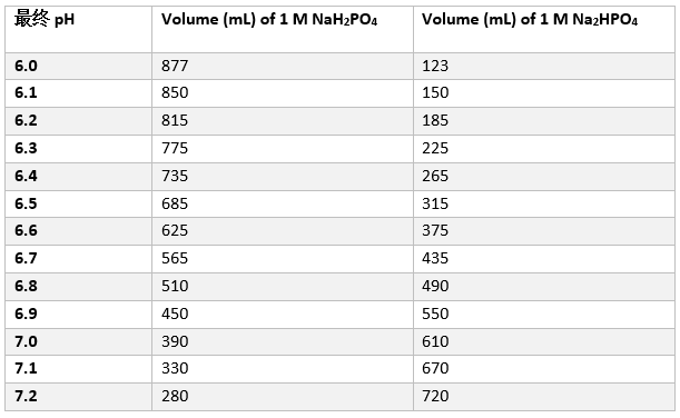 1L1M磷酸钠缓冲液()配比表(25°C)