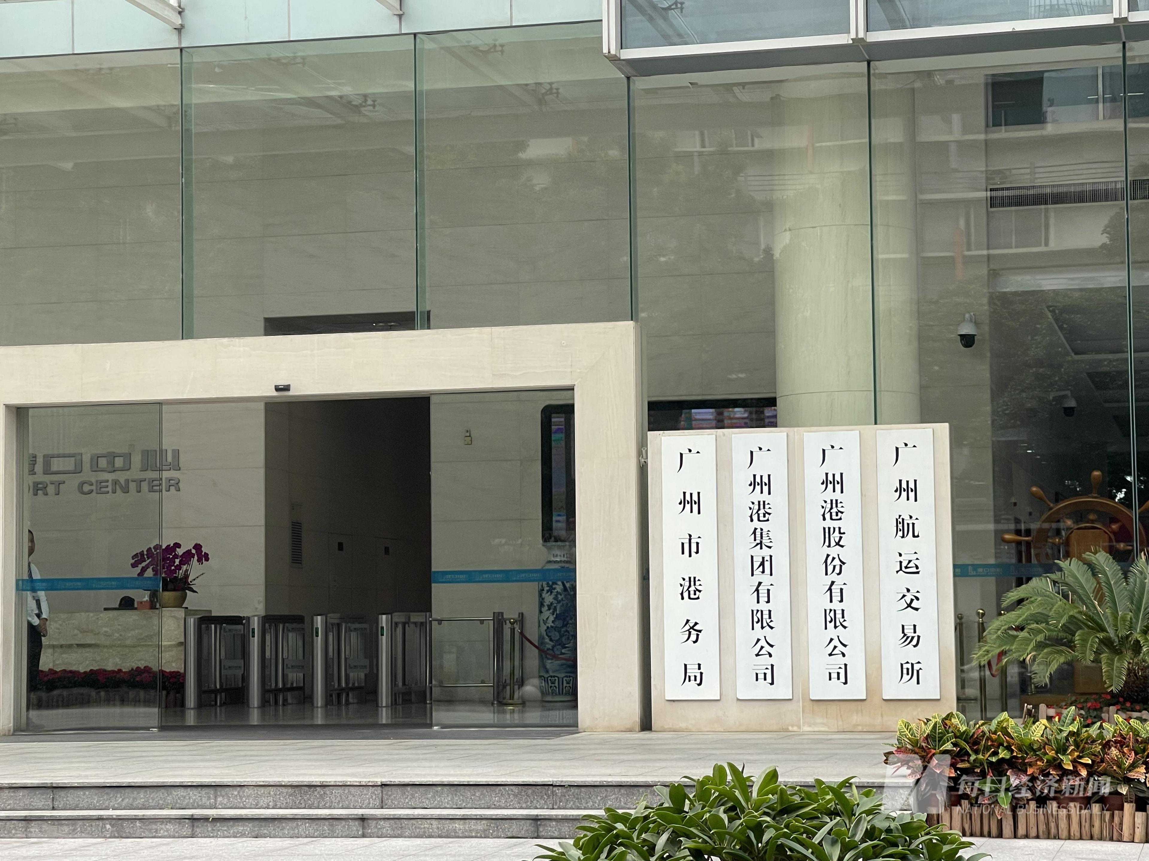 珠江河畔紧邻二沙岛位置,港口中心的门口挂有广州市港务局、广州港集团、广州港、广州航运交易所这四个牌子。4月12日上午10时,《每日经济新闻》记者来到港口中心一楼大堂,物业以没有预约为由,拒绝记者进入广州港办公地。一楼大堂旁边是广州港集团的展示大厅,两旁还有“高质量发展”“发挥领头羊和火车头作用”等字样的宣传展示。大堂还呈列有广州港集团3月11日这一期的内刊,上面头版刊登了李益波的上述讲话。记者注意到,在10时23分左右,多位身着统一白色衬衫的工作人员站在大堂门口,还有人拿着笔记本,彼此相互交谈。不一会儿,一辆车到达门口,身着同样白色衬衫的中年人下车。随后,门口等候的工作人员同他一起步入电梯。记者注意到,白色衬衫的衣服款式同广州港集团员工的制服相似。