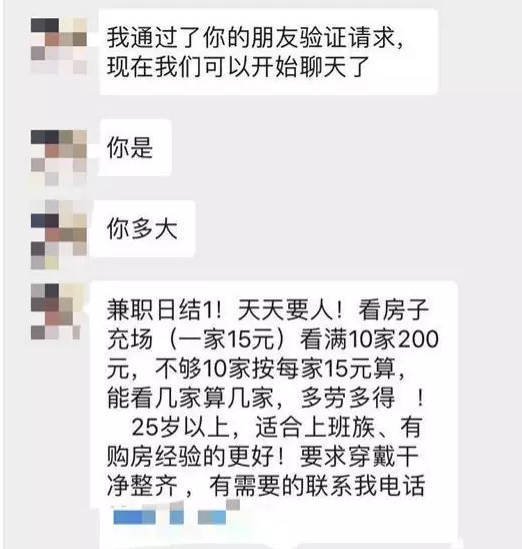 中介又拿出一部分来招兼职,每人每看一家,就给15元,自己赚5元。