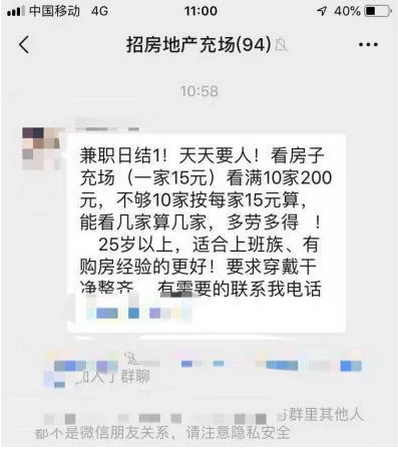 看房演员的职业自然而然的传到了全国各地,济南也毫无例外中招了,就在前几天,某地产大V的微信群里,竟然也高调出现了看房演员的招募。